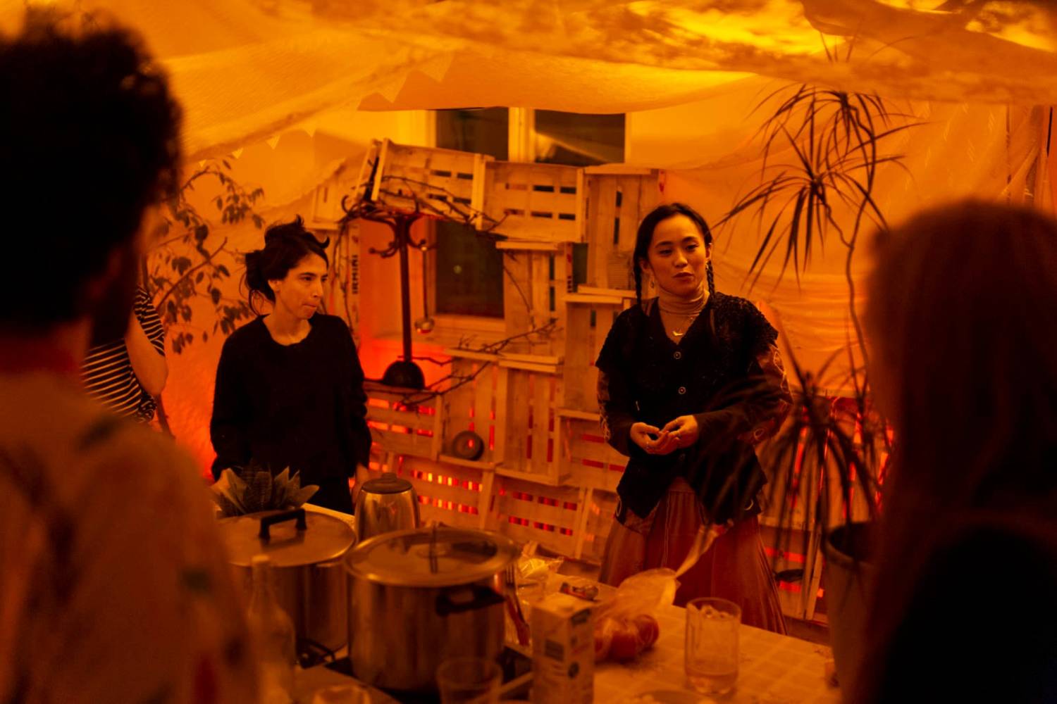Umělkyně Lora Krasteva, Sonya Darrow, Alma Lily Rayner, Maa Ry Nguyen a tým Terénu vás zvou ke společnému jídlu, odpočinku, povídání a tvoření. Během 36 hodin, včetně přespání, se Studio CED promění v útulné útočiště pro všechny, kteří ho potřebují. V pondělí 21. března od 10h se k nám přidejte a společně s námi budujte to, co pro nás znamená domov: z pozice imigrantů, lidí a občanů Brna i mimo něj. Suroviny na jídlo, které společně uvaříme, zajistíme, probíhat budou polostrukturované diskuse a prostor pro reakce, sdílení nebo společné posezení. Můžete se zastavit, přijít a odejít nebo zůstat déle. Rodiny a děti jsou vítány.