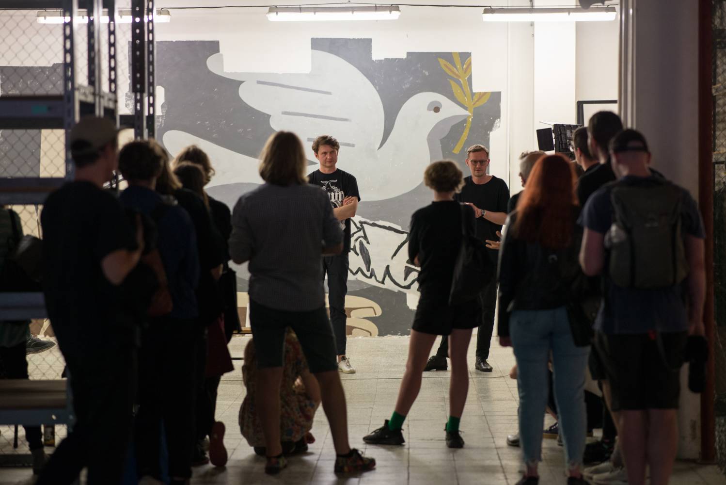 Maximalistická malba a svého druhu dočasná a současná výtvarná stopa výrazného výtvarného tandemu bude vznikat během celého konání Domu kultury a konců, aby byla s demolicí obchodního centra společně s budovou rozprášena.