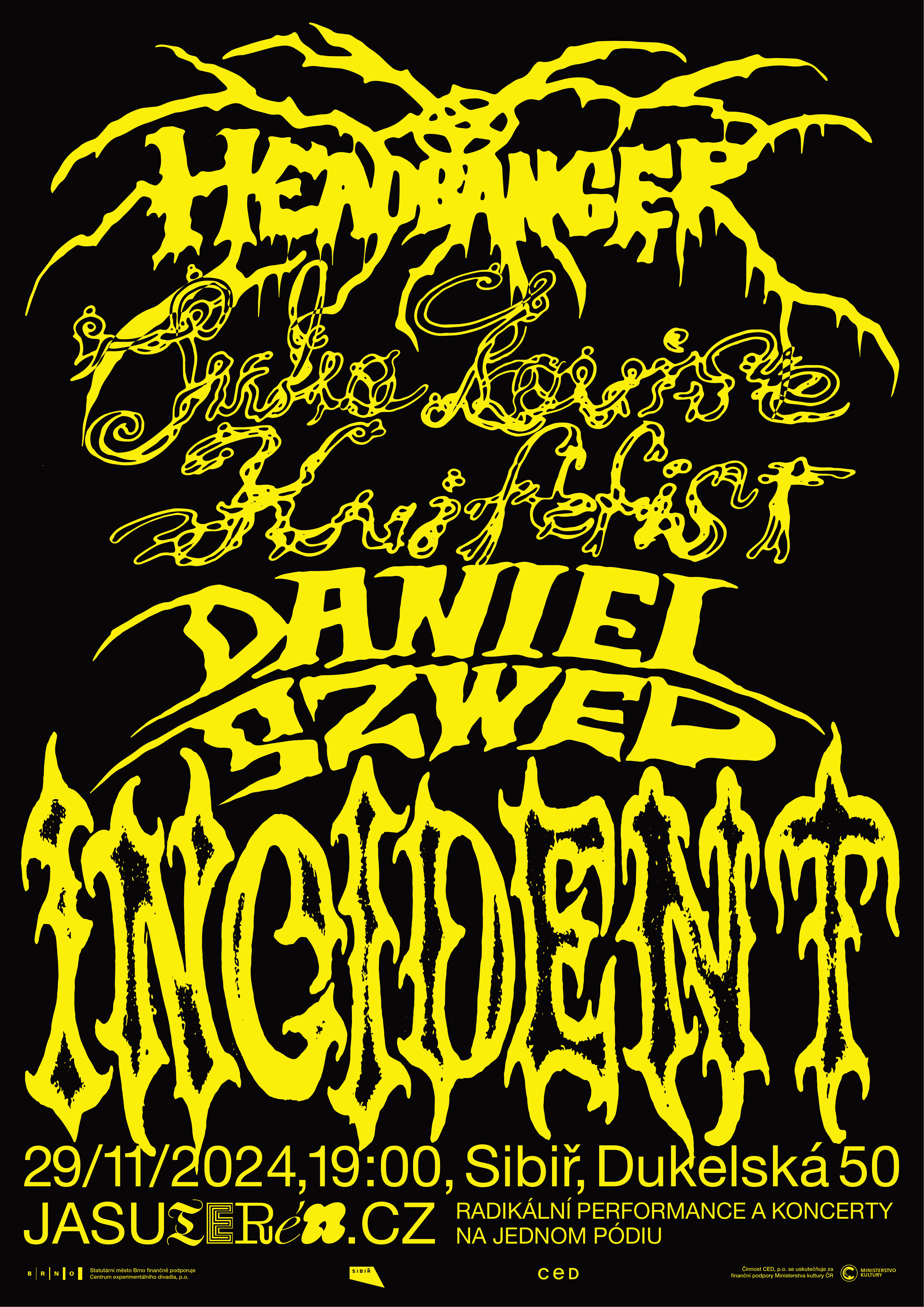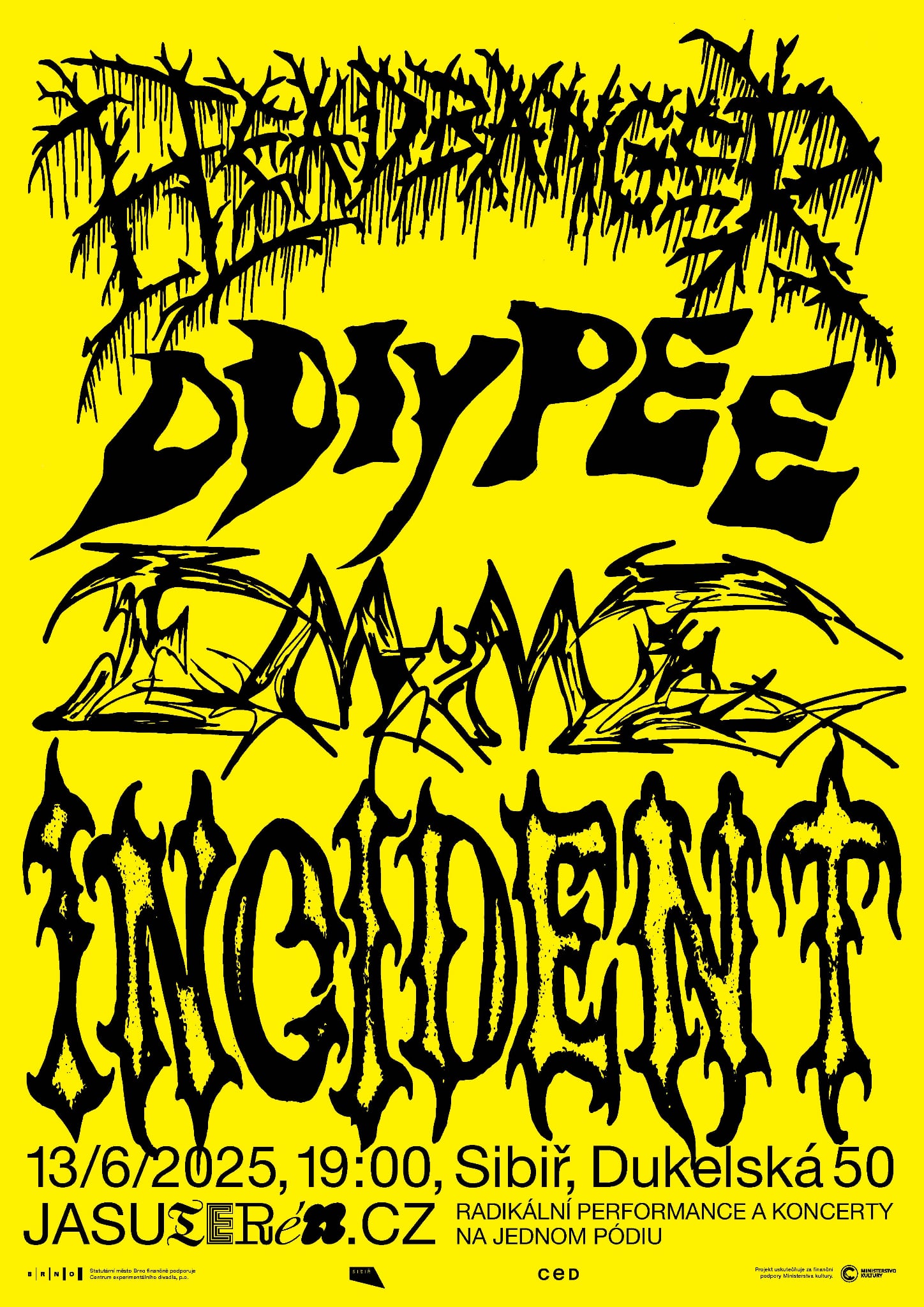 Incident je průběžná série hudebních událostí, které Terén organizuje v prostorách nezávislého kulturního a komunitního centra Sibiř. Do programu zveme hraniční produkce, kolísající mezi koncerty a performancemi. Incident jsou cross-žánrové eventy, jejichž program spojují vysoké intenzity a energie a specifické situace na stagi i pod ní.