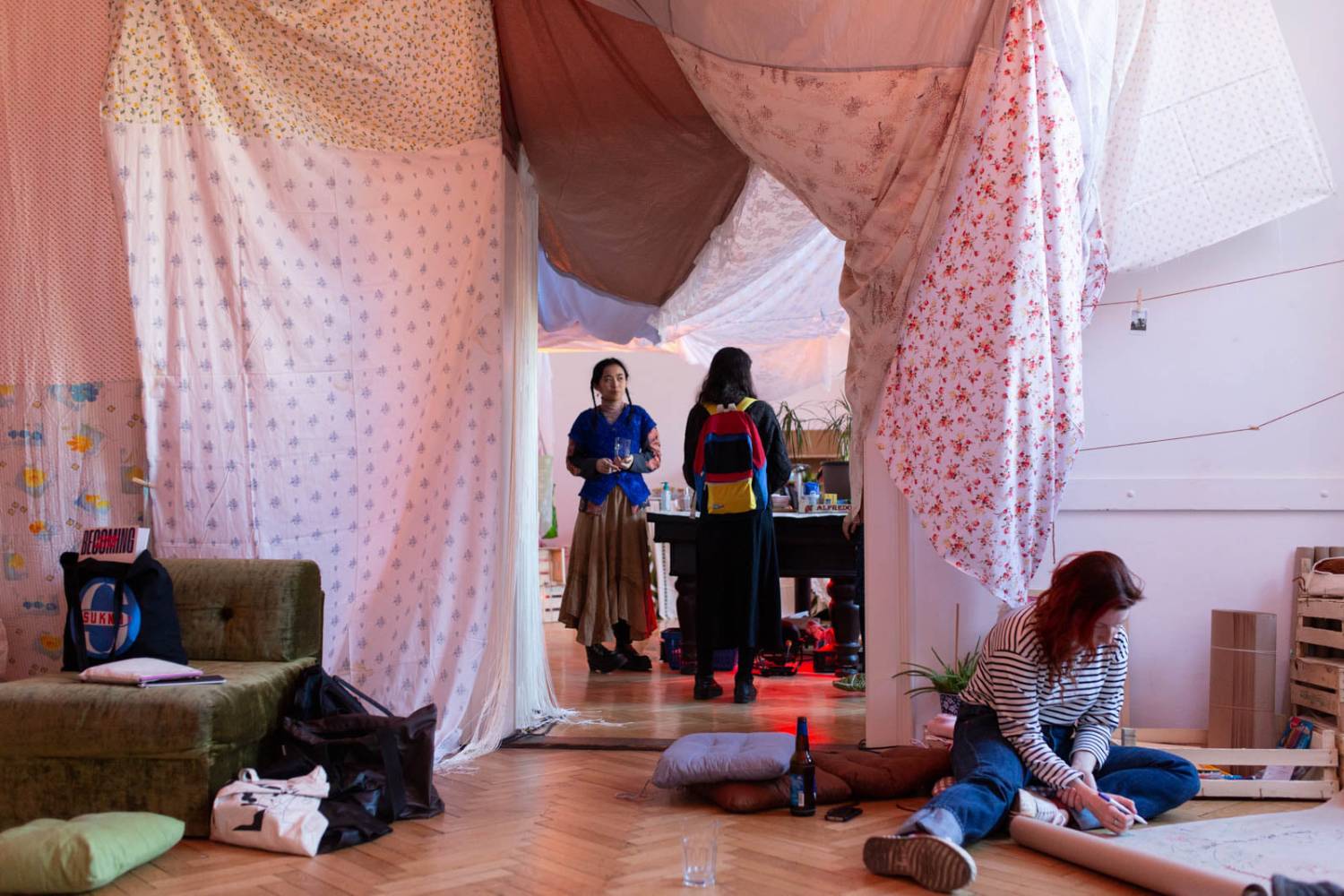 Artists Lora Krasteva, Sonya Darrow, Alma Lily Rayner, Maa Ry Nguyen and the team at Teren invite you to eat, rest, talk and create together. Over 36h, including a sleepover, Teren’s studio is transformed into a cozy space of sanctuary for all.