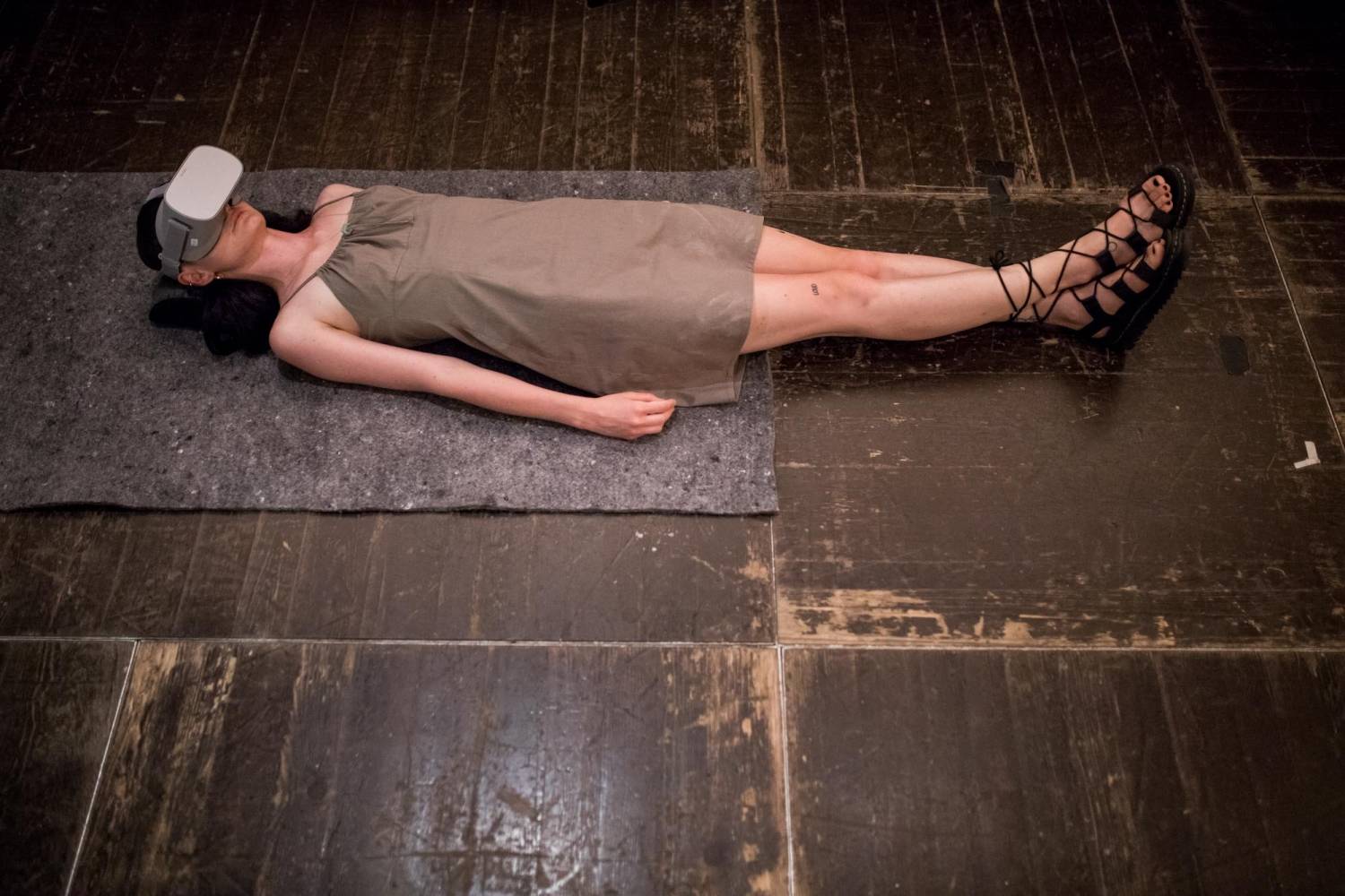 Unfolding the inner space outwards, and the outer space inside is a strategy to unwrap the various layers of reality. The performance is proposing a perceptual laboratory in which the audience members have the space to formulate their questions regarding their position towards reality and reflect on the existential and philosophical dimensions of being present.