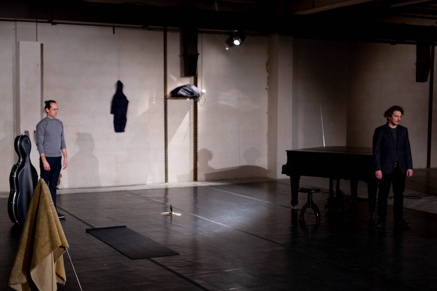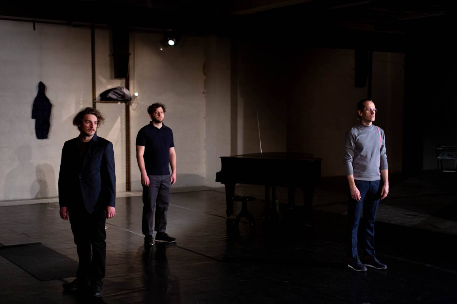 The concert grand piano stands on stage in excellent condition. The actors walk back and forth around the instrument, with no certainty that a single note will be heard. And they believe. As do the authors, fascinated by music's ability to transport us beyond concepts and meanings, where being is diluted or concentrated to the point of becoming noise.