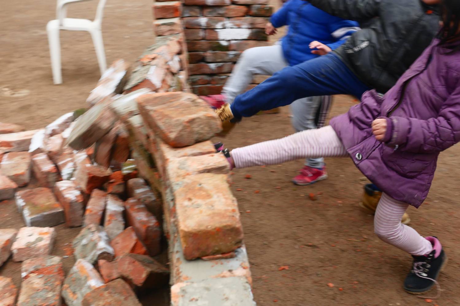 BB: Yeah, right. Anyways, in order to really emphasise the thought of working for work’s sake we also knocked the wall down right after we’d built it. I just ran off to Hvězdová and bought a spray for the kids to fool around with, we took some photos, and tore the wall down.