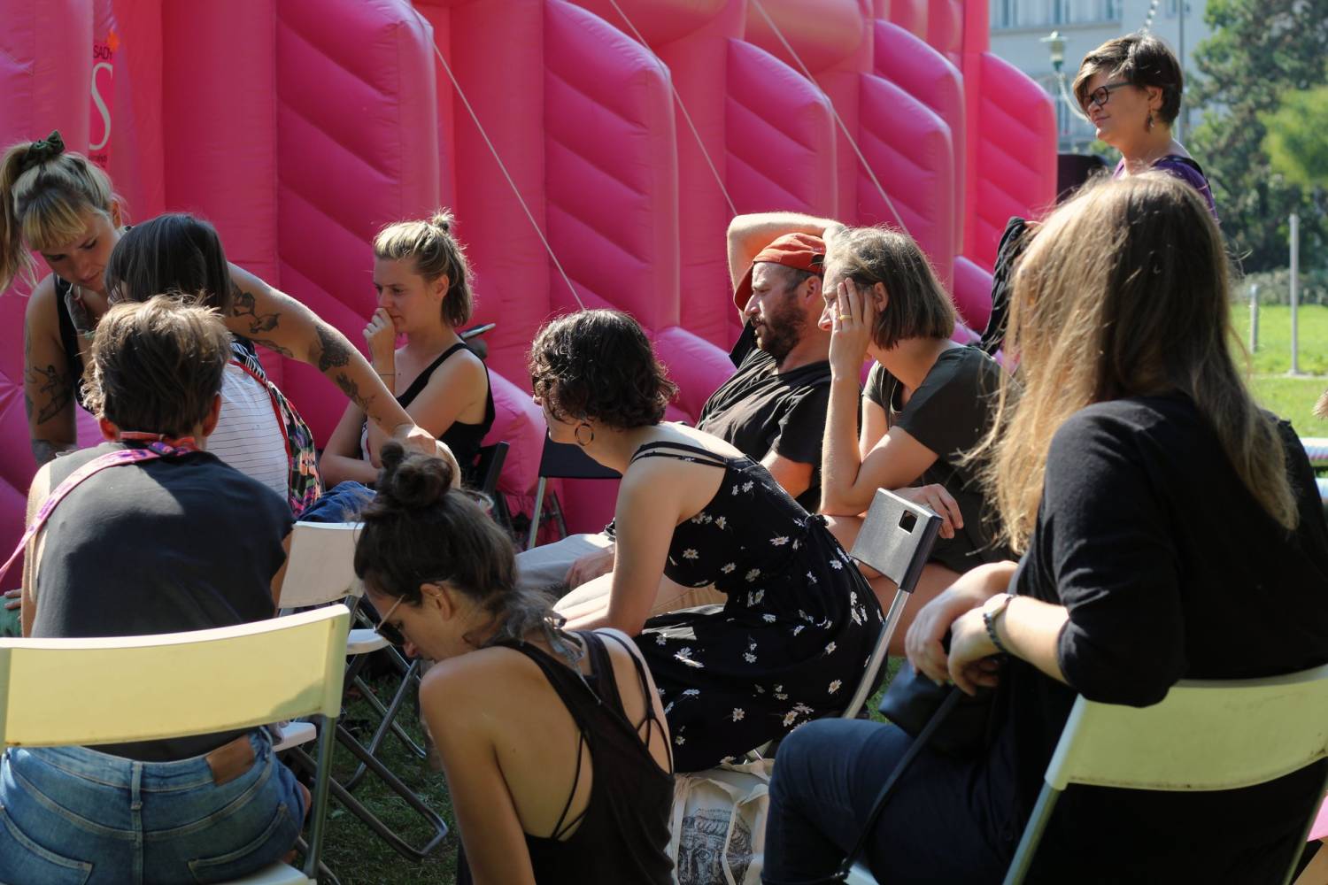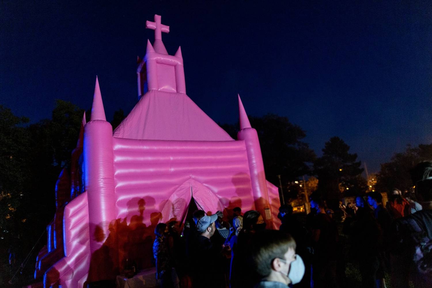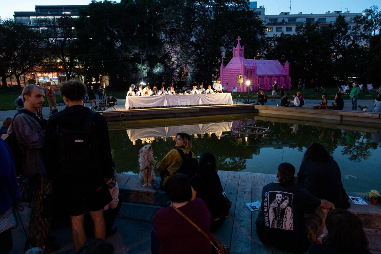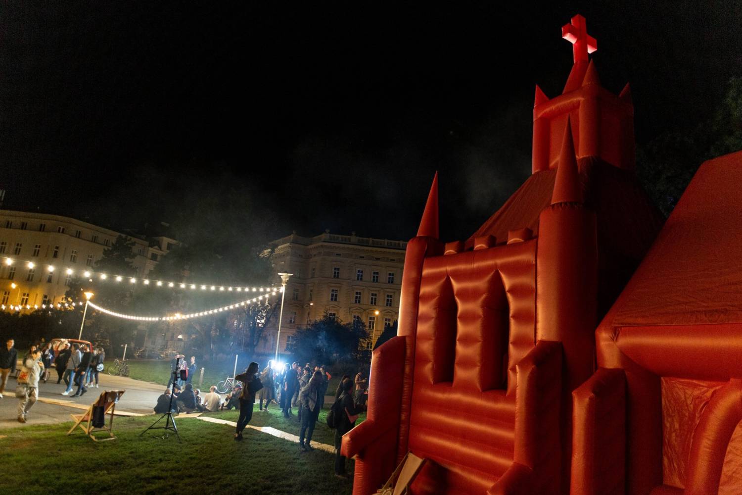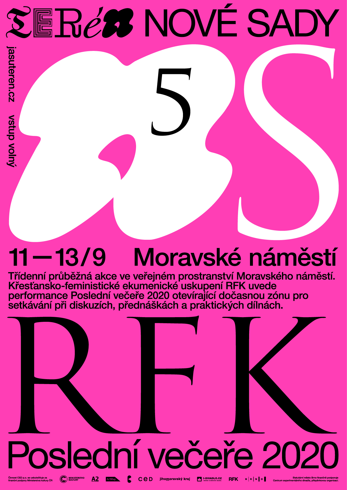 The performance Poslední večeře 2020 (The Last Supper 2020) was held in the public space of Moravské náměstí, Brno. The opening event was followed by a two-day programme offering a temporary platform for public discussions, lectures, and workshops. The RFK collective invited affiliated activist groups and female experts specializing in the topics of sexual violence within the Roman Catholic Church, and contemporary conservative religious currents in Europe.