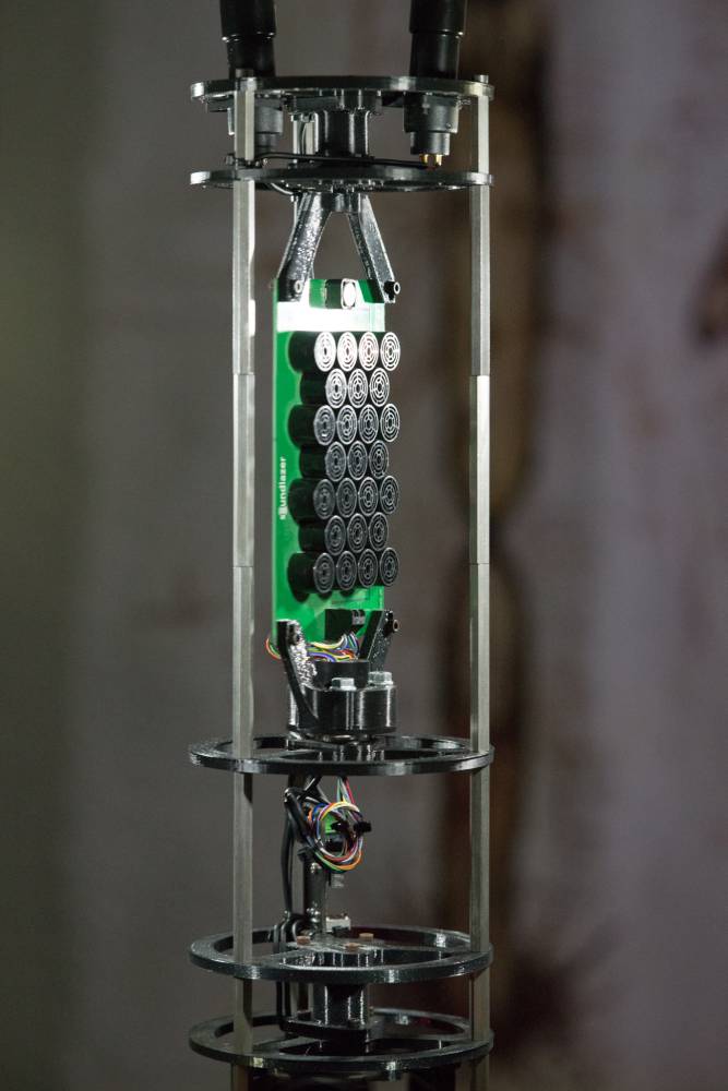 Since 2015, OOSCH has performed several ceremonies in various locations in Slovakia, the Czech Republic, and Austria. The core of their practice were mostly simple (psycho)acoustic phenomena, the power of sound in the purest possible forms. In their first-ever Ephemeral Shrine exhibition, they create an environment consisting of various sonic objects working on the principles of sound in motion, acoustic interaction, and ultrasound.