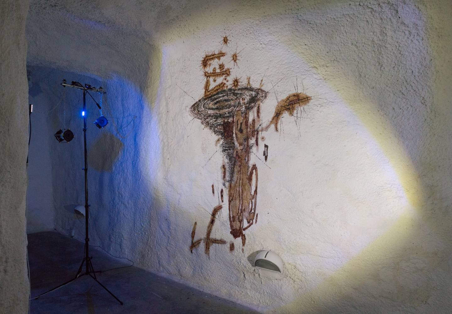 The following exhibitions from the guest groups MSHR and EJTECH are based on similar concepts. By creating their own, often alien-looking aesthetic language, they present new audiovisual environments reminiscent of shrine decorations. The space of the catacombs is gradually transformed into temporary temples with sound as a sacred instrument. Research continues.