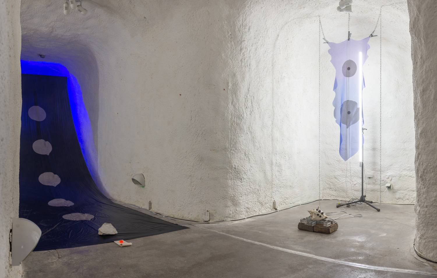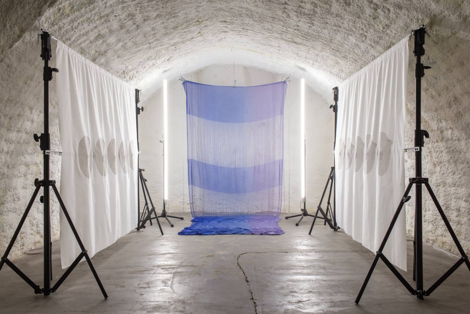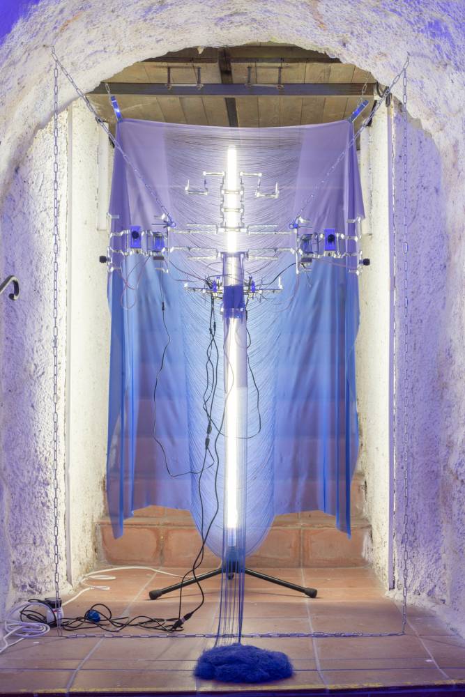 The final part of the project Order of Sonic Chaos presents the work of the artistic duo EJTECH, consisting of Judit Eszter Kárpáti (HU) and Esteban de la Torre (MX). The interdisciplinary duo works with metamaterials, experimental interfaces and augmented textiles. For the catacombs of the Centre for Experimental Theatre they created a site-specific installation called Along the Meander. The exhibition block will be accompanied by performance called Split Weft, guided tour, and artist talk.