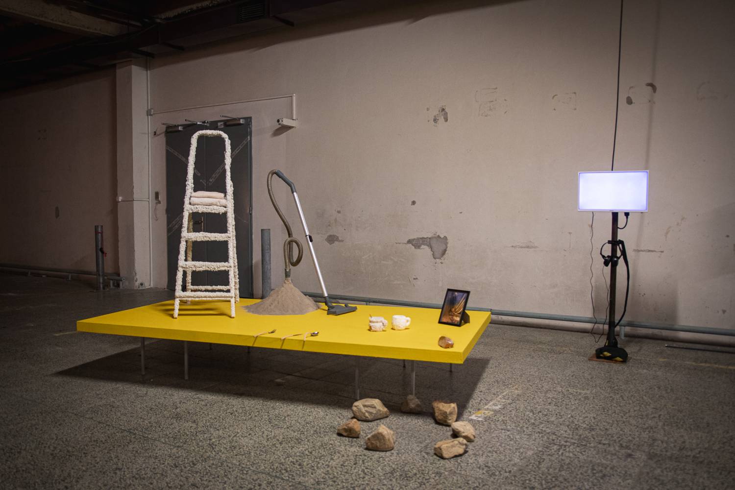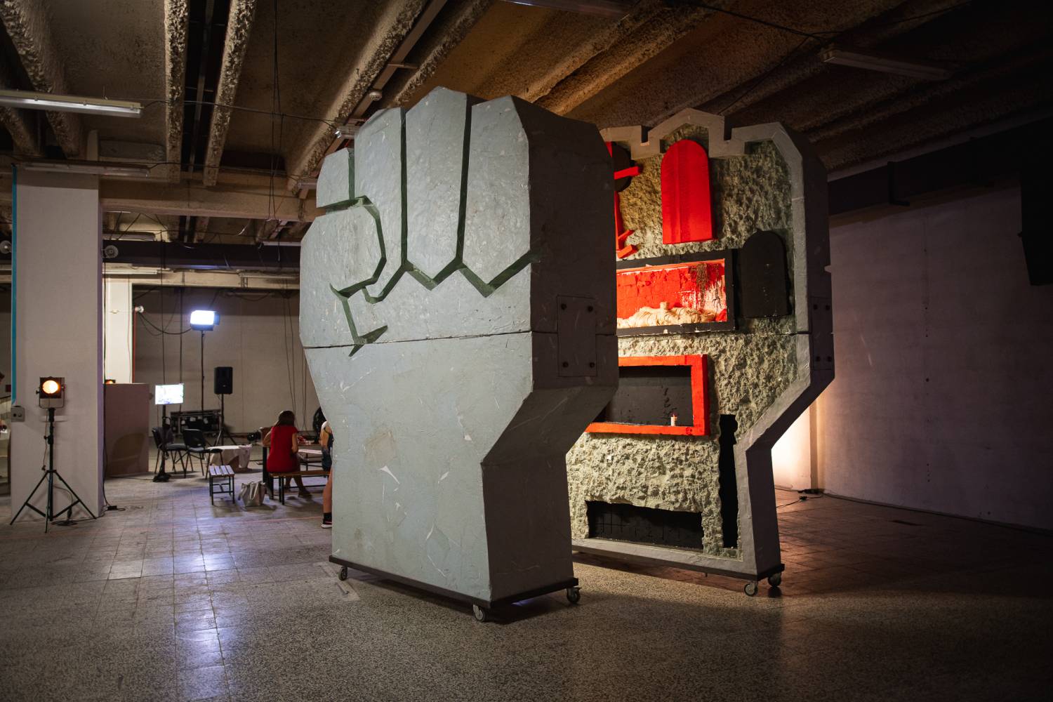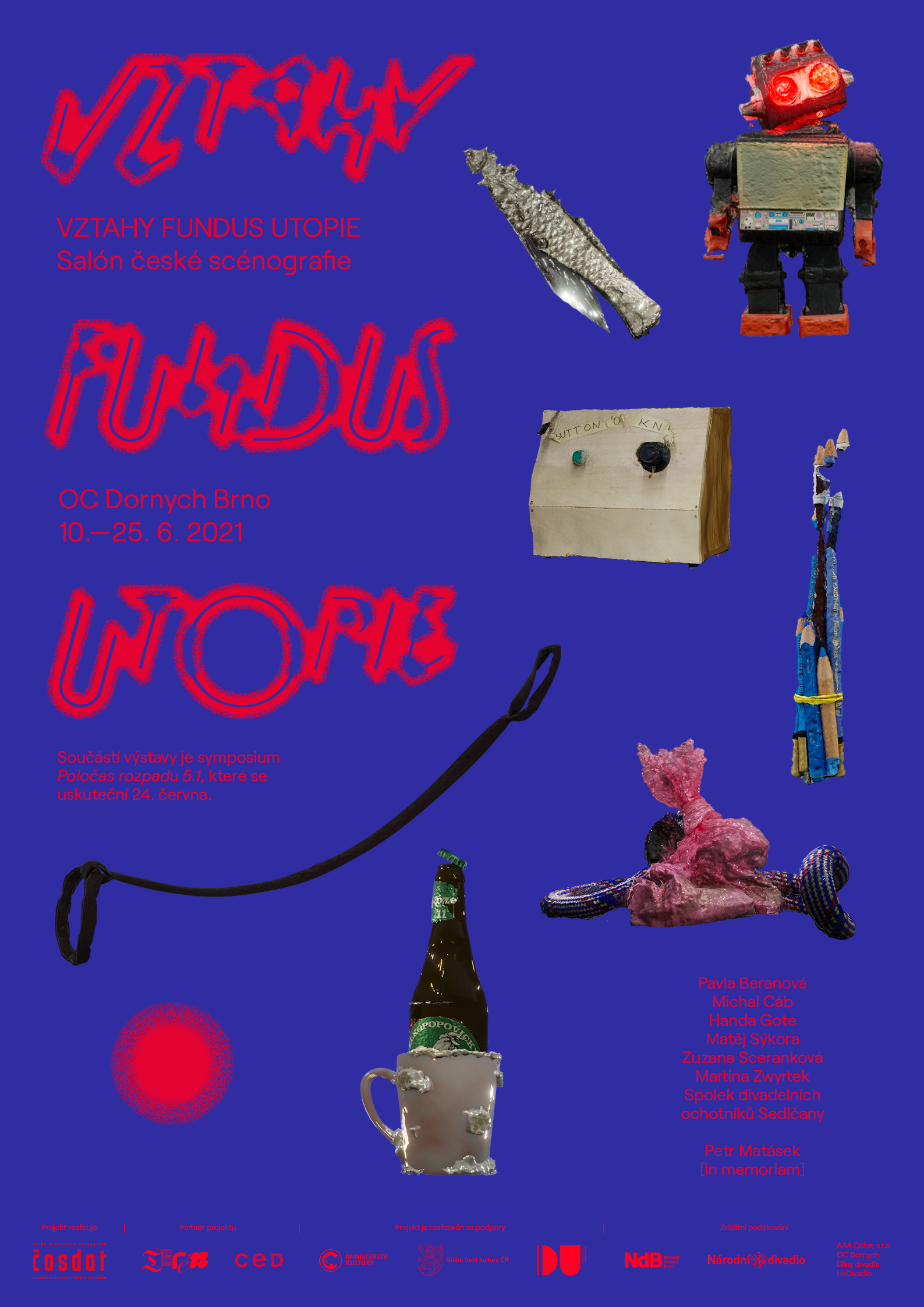 Sedm scénografek, scénografů a kolektivů s výrazně odlišnými tvůrčími východisky se potkává v site-specific instalaci ve skladových prostorech brněnského OC Dornych (bývalý Prior) a diskutují o principech divadelně-scénografické tvorby, o svých naplněných i nenaplněných vizích. Jejich společná utopie se zhmotňuje v podobě vystavovaných objektů, zároveň ale vytváří divadelní fundus – archiv předmětů, které bývaly scénografií; místo transformace, dokument tvůrčího procesu, pozůstatek (divadelního) tady a teď.