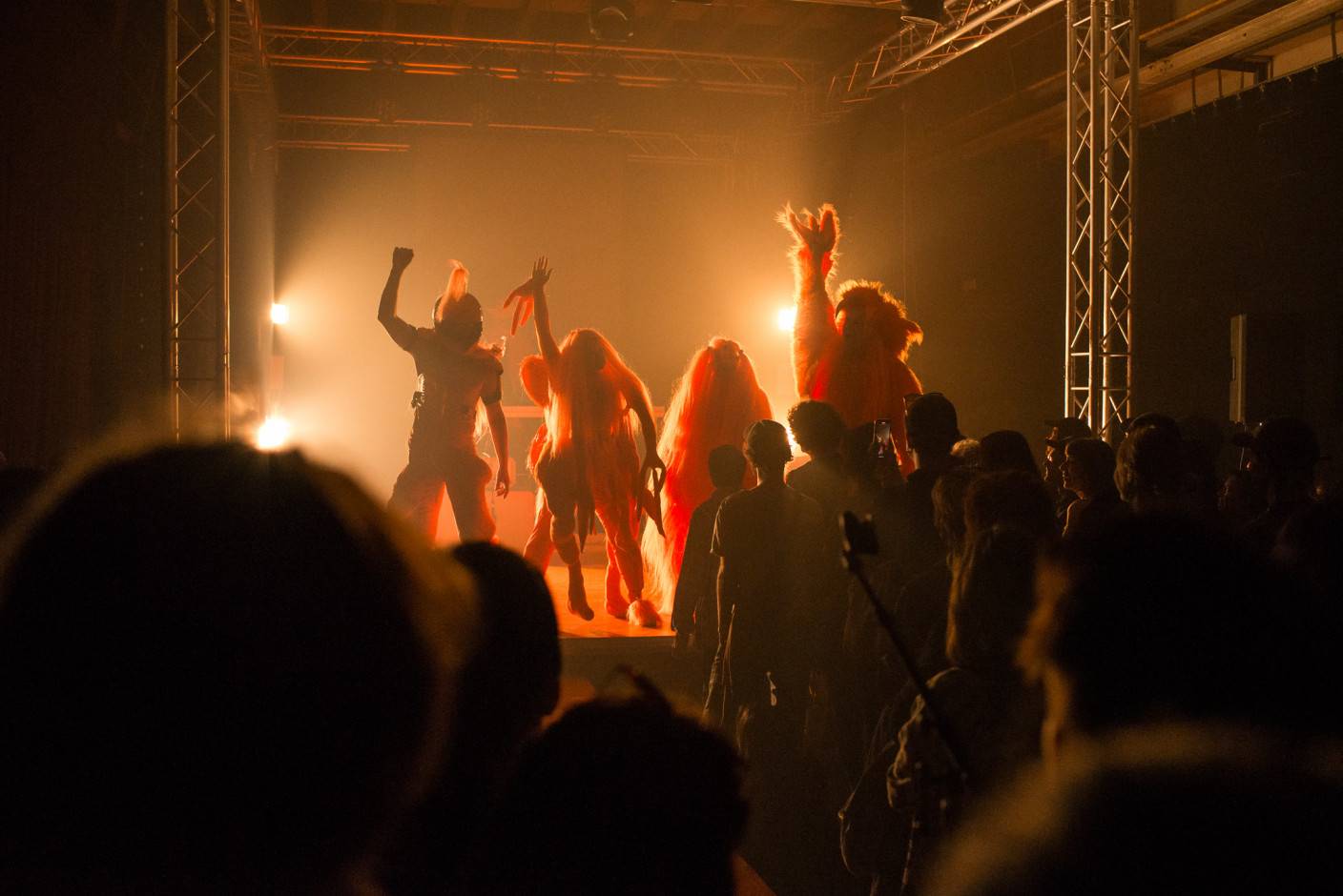 "We have created a stage performance with the love of musical worlds. Of their genres, sub-genres, and sub-sub-genres, of their cultures, aesthetics, icons, and fetishes. It's an intense physical performance by a five-member performance group somewhere between a concert, a party, a light show, and a dance choreography inspired by headbanging, a cyclical repetitive dance movement, often limited to the upper half of the body or only the cervical spine. Headbanging emerged from a fascination with the theatricality and fiction of music, artistic alter egos, stage identities, costumes, and set design. It was born from the amusement of transgressing the permissible in ordinary reality, obscenity, silly song lyrics, symbols, mythologies, pseudo-spirituals and primordial spiritualities, conspiracies, images of hyperviolence and hypersexism, and commercial countercultures. Headbanger was born from the joy of collectively experiencing concerts, atmospheres, and moments that make us physically react with our bodies. Situations in which we can be emotional, expressive, and spontaneous. Situations in which we can express ourselves without exposing ourselves to judgment. Headbanger is a performance that has gone