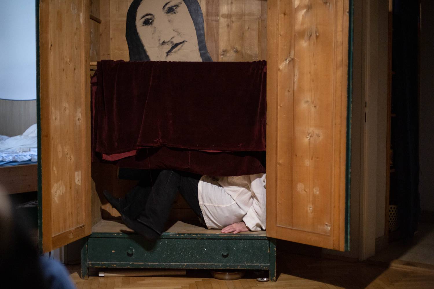 In the foyer of the universe, between the bed, the table, and the window of one’s own flat. A poet, actor, director, and an unparalleled individual – Ján Sedal is returning to theatre in an intimate work of art which he, in collaboration with musician Tomáš Vtípil, materializes in the space of his own living room.