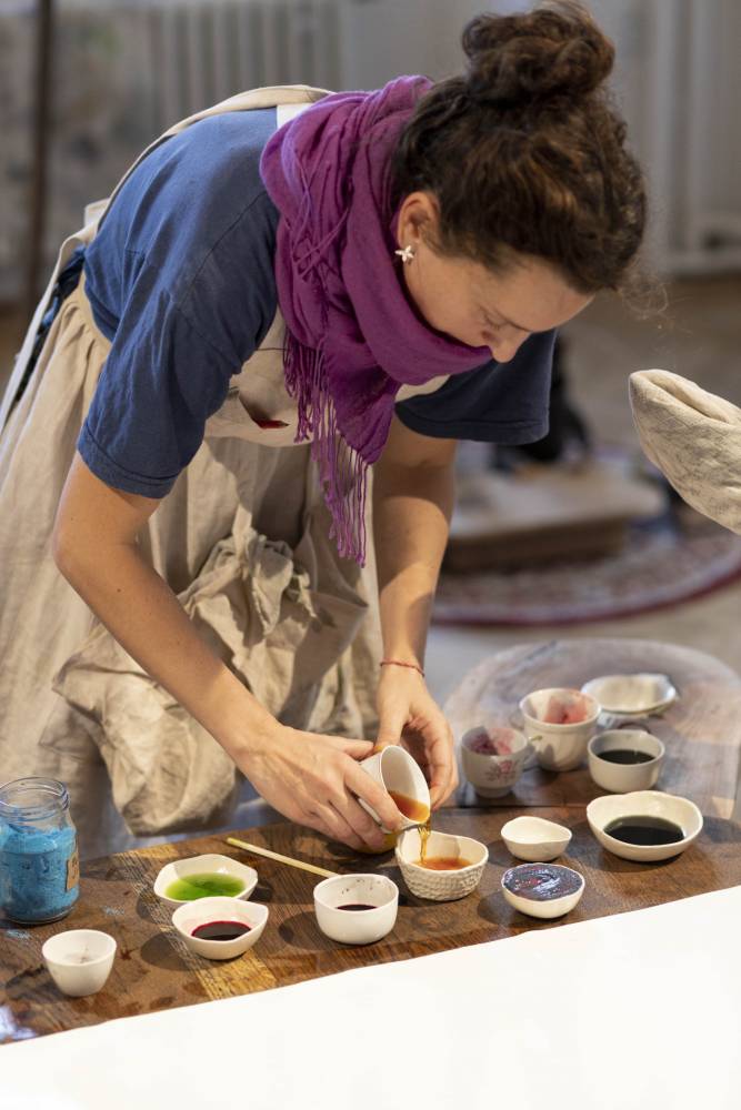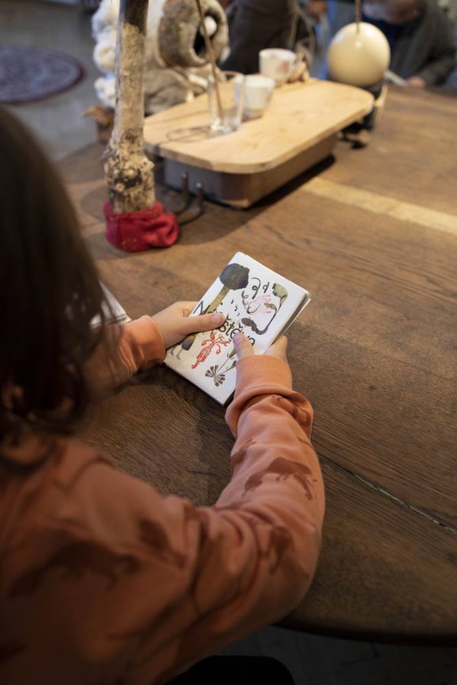 Our rather peculiar hostess lives together with animals, mushrooms and dream creatures. She brews colourful dyes from flowers, herbs and spices, and she likes to paint. While she does so, she is either silent or she is murmuring to herself. She’ll be happy to welcome you to her home, where you can look at her paintings, sit down and enjoy this miraculous meeting. Feel free to paint and have a cup of juice.
