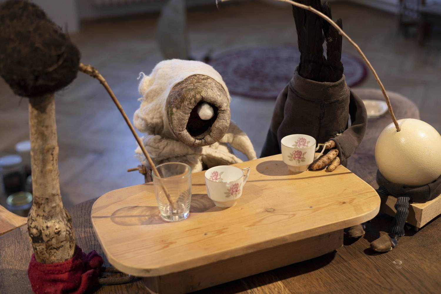 Our rather peculiar hostess lives together with animals, mushrooms and dream creatures. She brews colourful dyes from flowers, herbs and spices, and she likes to paint. While she does so, she is either silent or she is murmuring to herself. She’ll be happy to welcome you to her home, where you can look at her paintings, sit down and enjoy this miraculous meeting. Feel free to paint and have a cup of juice.