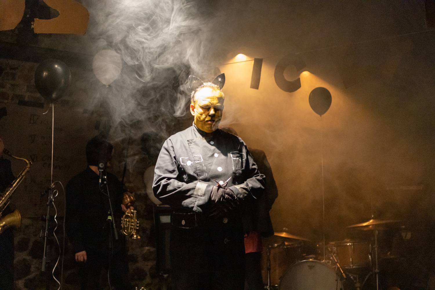 “Our multinational group brings you the third edition of RMFH, this time we meet the already deceased Cat Communistic leader Maow and enjoy his honorary memorial show played to you by Rickey Mouse and his All-Mouse House band. We celebrate the death of open politics and embrace the flow of the surrounding obscure contemporary nightmare with eyes crossed and tongue in the cheek.”
