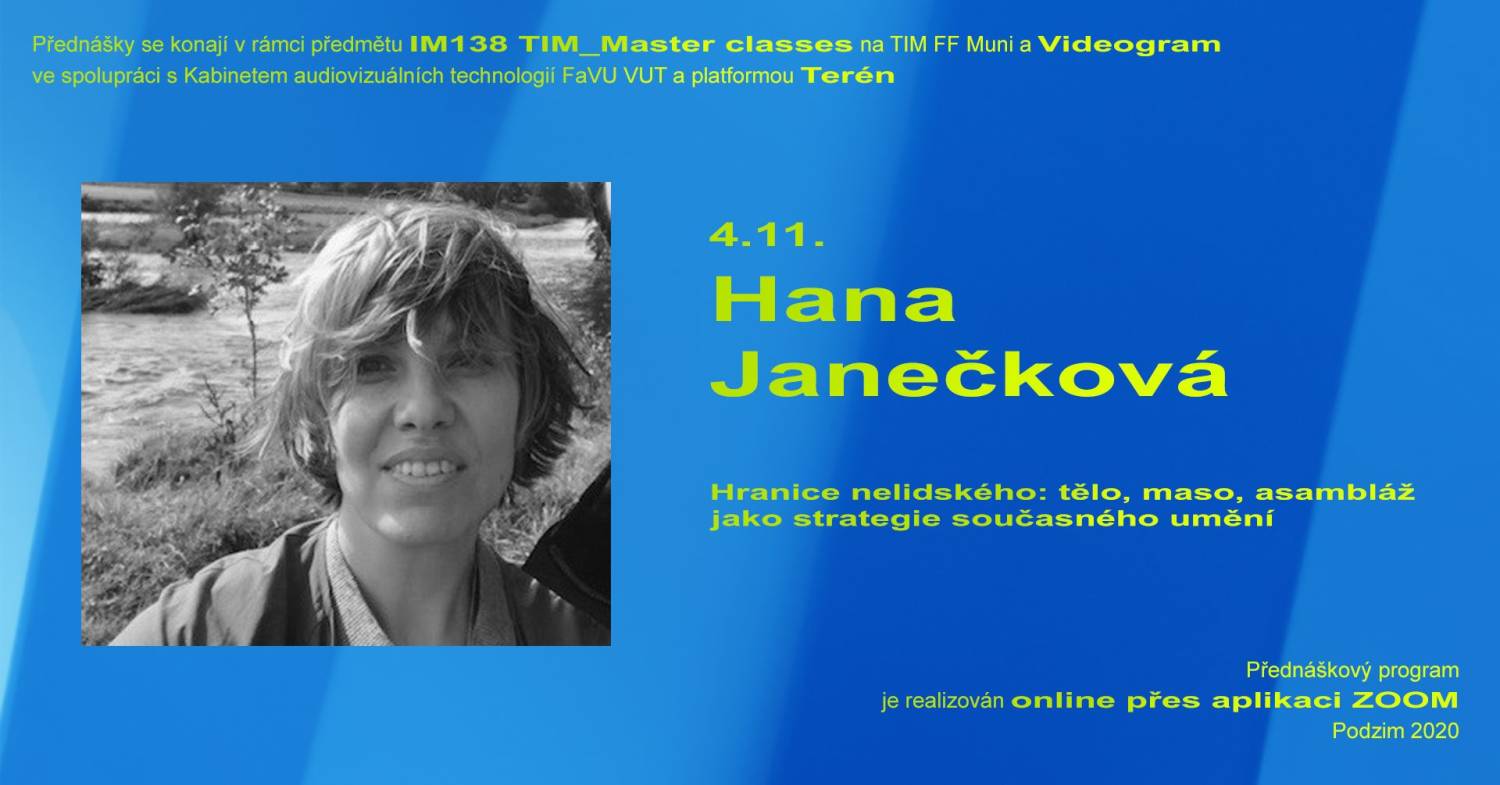 Bio: Hana Janečková je teoretička a kurátorka, působí jako pedagožka současného umění a pohyblivého obrazu v Centru audiovizuálních studií na FAMU a je členkou kolektivu Display Sdružení pro výzkum a kolektivní praxi. Ve svém výzkumu se zabývá subjektivitou, technologiemi a feminismem v umění po roce 1990. Absolovovala studia vizuálního umění na Chelsea College of Art and Design (2011), historii a filozofii na King’s College London a působí také na University of the Arts London. Z vybraných aktivit lze zmínit tříletý výzkumný a kurátorský projekt Multilogues on the Now (Display, Praha), z publikací příspěvek do Radicalising Care Sternberg Press, antalogie o technologiích těla Diagnosis (Artalk.cz, 2017), Speak, Body (FAHAC, University of Leeds, 2017), nomádský feministický kurátorský projekt Hotel Ozone. Byla spoluzakladatelkou a vedla Artyčok.TV London (2010–2015), redaktorkou FlashArt CZ/SK a občas píše pro Artalk, Frieze, Springerin, Romboid, A2, Kapitál a jiné.