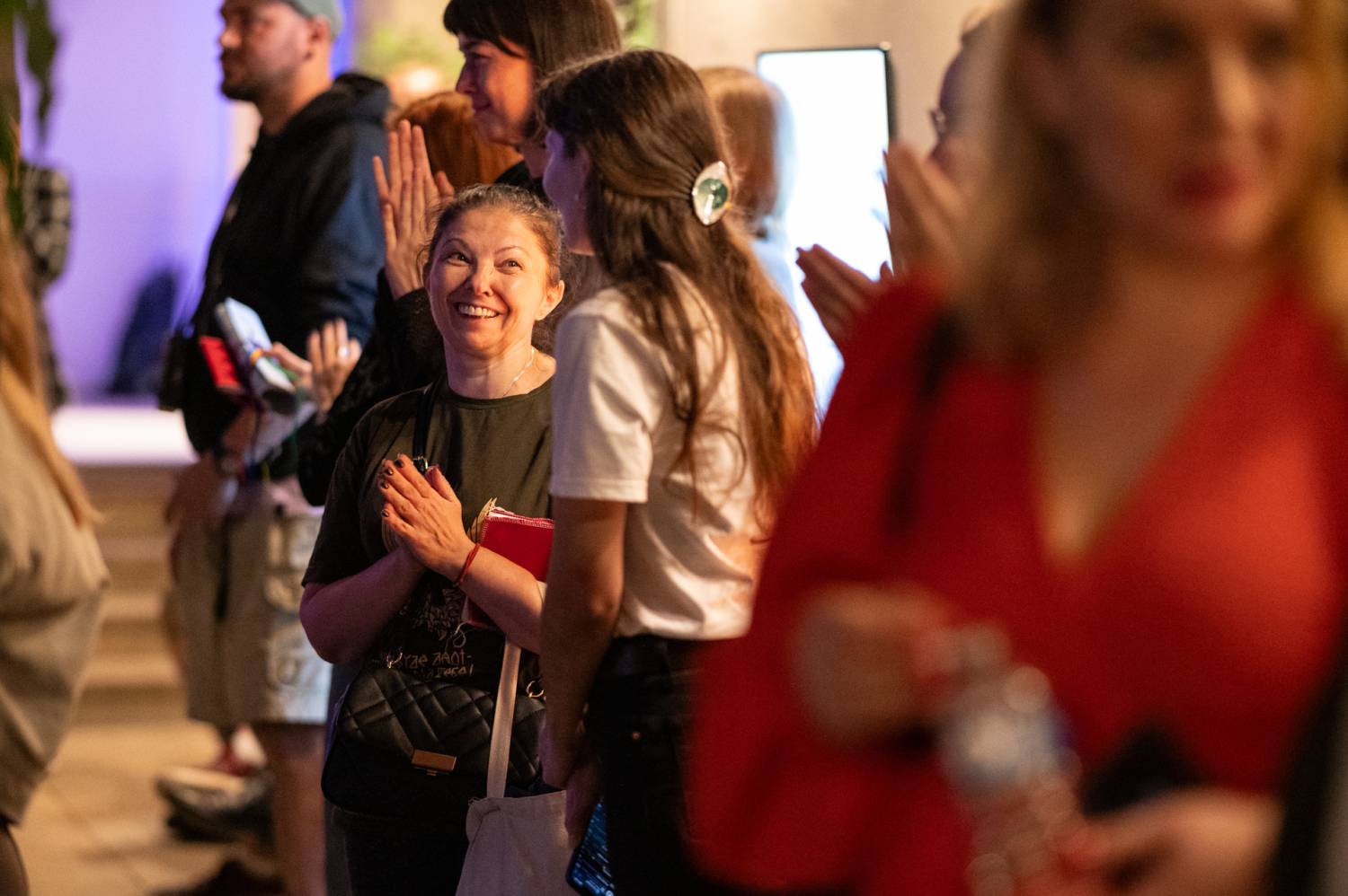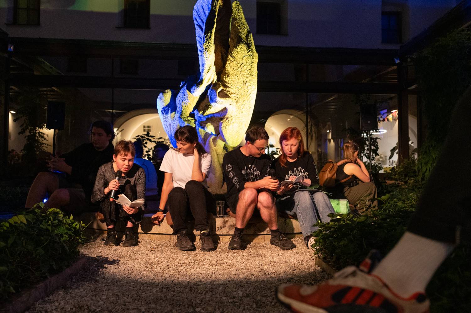 Pro děti, popřípadě jiné hravé bytosti, čeká workshop vyrábění koláží s Annou Medvetskou. V průběhu večera poběží ve smyčce záznam brněnské verze performance Alevtiny Kakhidze a sestřih z připravovaného dokumentu Tetiany Khodakivské The Blue Sweater with a Yellow Hole. Setkání završí hudební performance Amelie Siby.