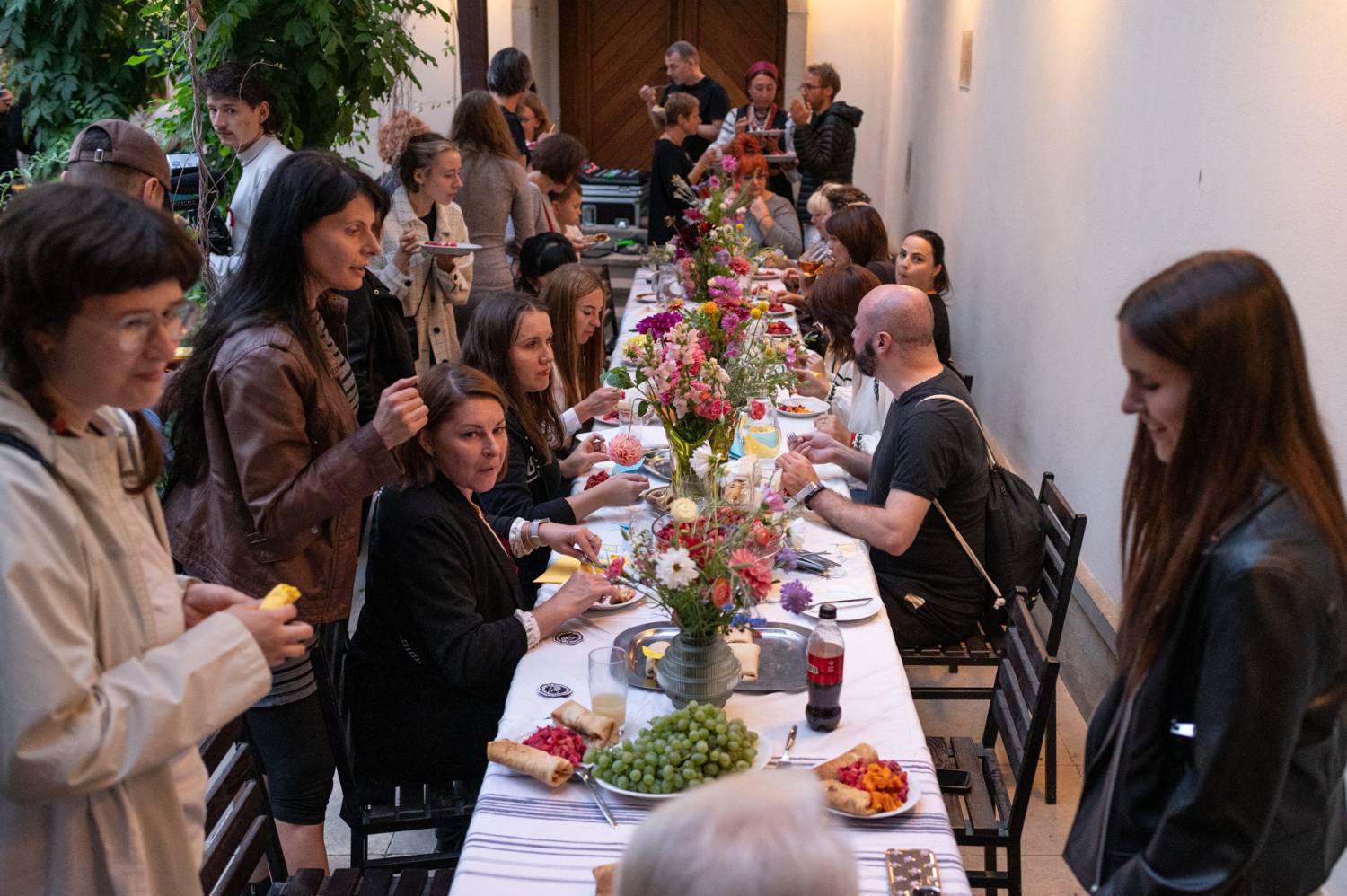 Усіх сердечно запрошуємо до спільного накривання столу з традиційними українськими стравами, які приготує колектив соцільно-екологічної неурядової організації NESEHNUTÍ – Добродійство Чарівних Вар. Якщо навесні ми варили тисячу вареників, то цього разу скуштуємо солоні та солодкі налисники та вінегрет. Приготування їжі, частування та роздуми супроводжуватиме sbor Vidrodžeňa/Хор Відродження.