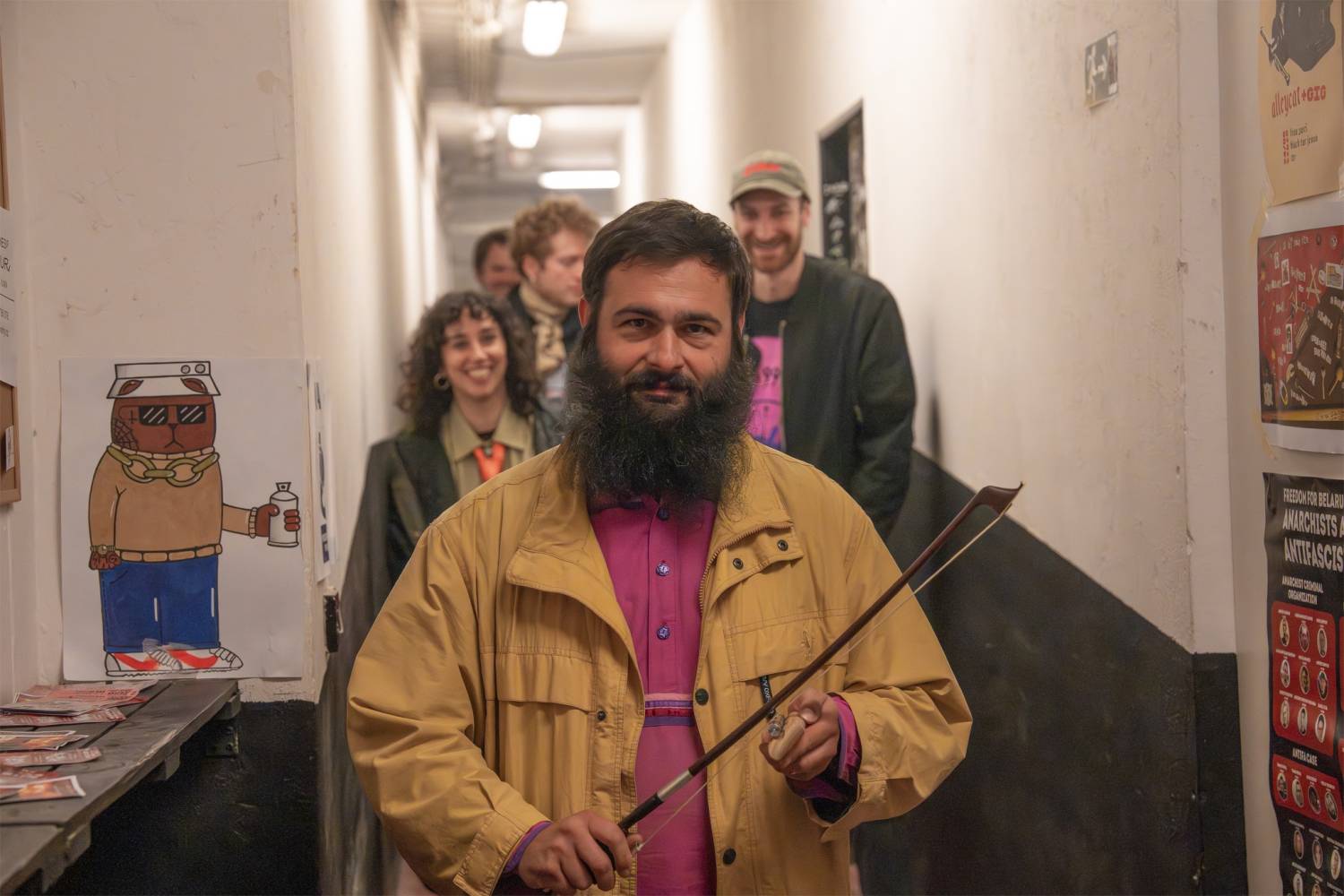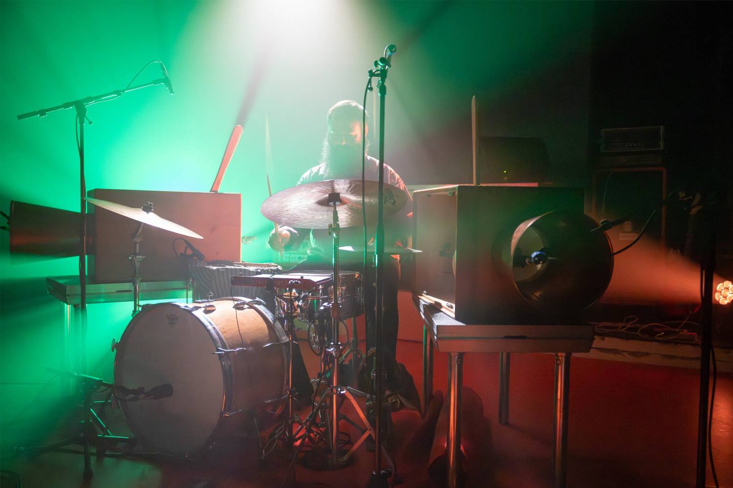 Schrödinger or Boom Boom God je fiktivní industriální folklórní kapela z Berlína, kterou založili Florian Kolb (dudy a bicí pady) a Pablo Ulises Lienhard (crackle synth a sampler). „Fiktivní industriální folklor” si pohrává s klišé industriální hudby a zároveň vyvolává hauntologickou nostalgii po tradičních nebo folklorních zvucích – hudba, která působí zároveň povědomě i tajemně, možná jako Schrödingerova kočka: zároveň mrtvá i živá. V září a říjnu 2025 bude Schrödinger or Boom Boom God na turné k vydání svého debutového alba „tüüfelsbrugg“ (Edelfaul Records).