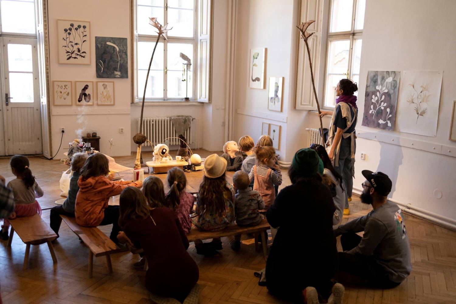 Trochu divná hostitelka bydlí v prostoru se zvířaty, houbami a snovými bytostmi. Vaří barvy z květin, bylin, ovoce nebo koření a ráda maluje. U toho buď mlčí nebo si něco drmolí. Bude ráda, když k ní přijdete na návštěvu podívat se na obrazy, posedět, zažít zázrak ze společného setkání. Kdo chce, může malovat a napít se šťávy.