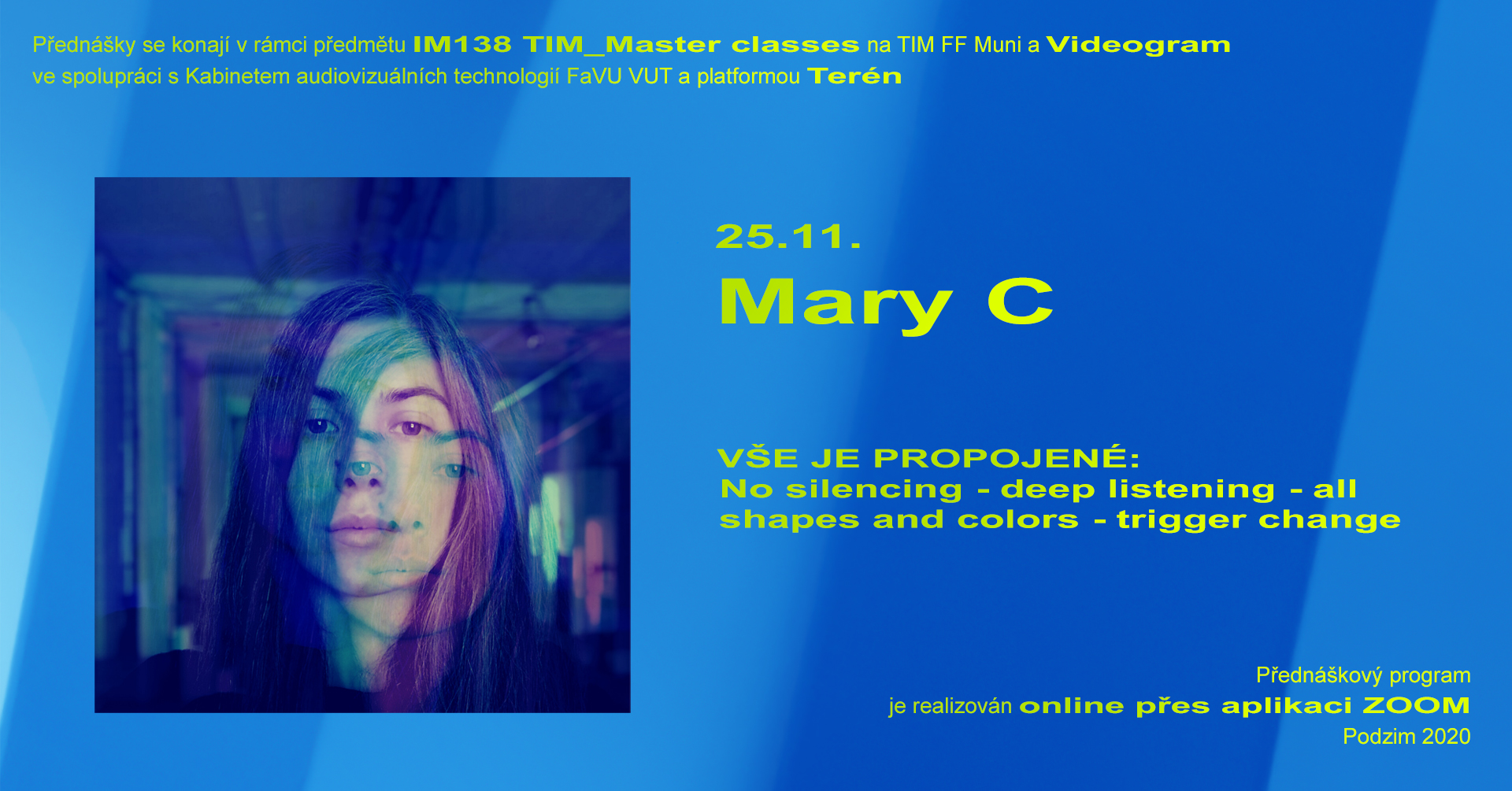 Marie Čtveráčková aka Mary C / bio: Hudebnice, kurátorka, lektorka a hudební publicistka. Jako redaktorka působí na Čro Radiu Wave. Je spoluzakladatelkou kolektivu ZVUK a Synth Library Prague, prostoru pro sdílení, tvorbu, diskuzi a experimenty v oblasti elektronické hudby. Společně s Martinem Tvrdým, jako platforma Kreaton, organizují více než 4 roky hudební workshopy a přednášky pro děti i dospělé zaměřené na popularizaci nových způsobů poslechu a hudební tvorby. Jako kurátorka hudebně-vzdělávacích akcích spolupracovala s Goethe-Institutem na sérii Music Ports, s Palácem Akropolis na festivalu No One Future, s MeetFactory a platformou SHAPE na mezinárodním vzdělávacím setkání Synapse. V rámci Synth Library Prague formovala kolektiv hudebnic Trigger, který publikoval také stejnojmenný magazín. Ve svých aktivitách se zabývá diverzitou a reprezentací na hudební scéně a v oblasti hudebních technologií. Přednášela jako hostující lektorka na Karlově Univerzitě, festivalech Heroines of Sounds v Berlíně, Construction v Diepru, Ment v Ljubljani nebo Electric Spring ve Vídni. Jako hudební publicistka se zaměřuje především na afroamerickou hudbu a její společenský kontext.