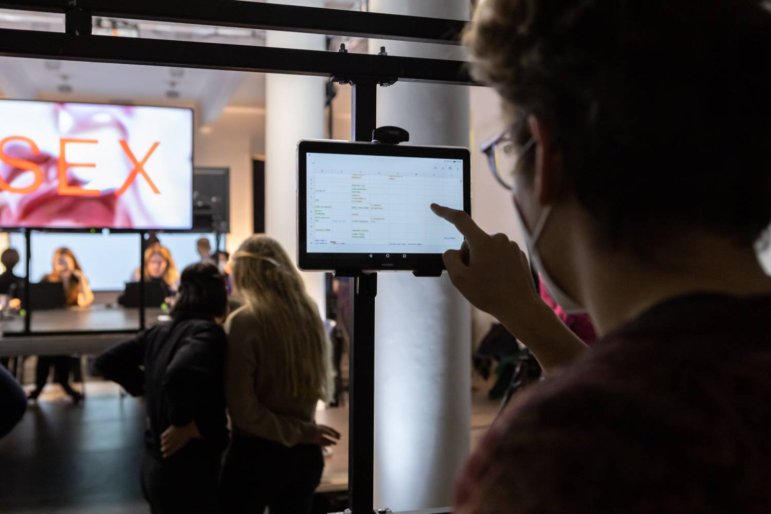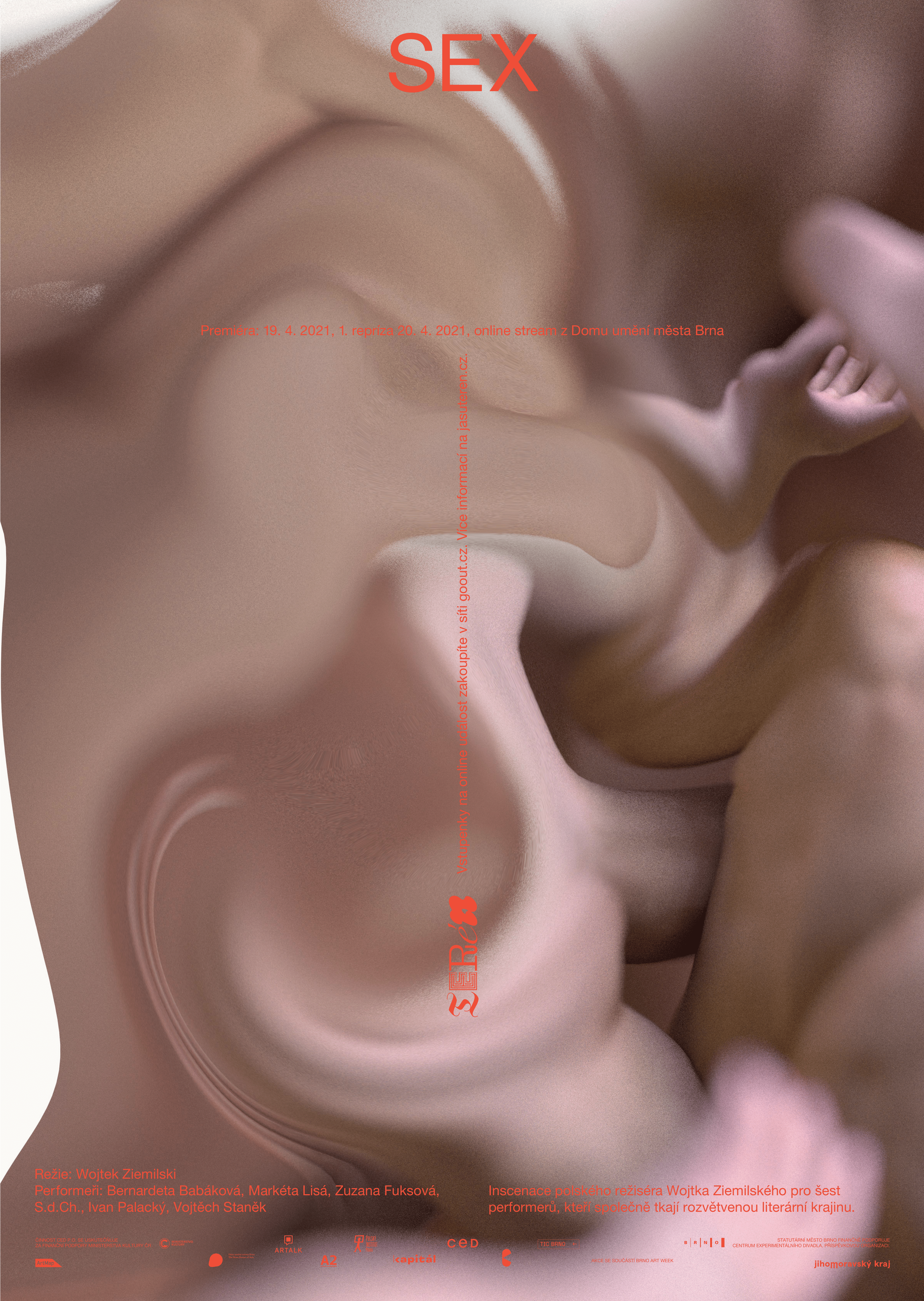 Inscenační projekt polského režiséra Wojtka Ziemilského s provokativním, ale i všedním názvem Sex představuje unikátní prostor budovaný šesticí performerů, kteří společně tkají rozvětvenou literární krajinu. Mezinárodně uznávaný režisér, choreograf a pedagog Ziemilski s oblibou testuje hranice divadelního jazyka a jeho styčné plochy, průniky či tření s dalšími uměleckými disciplínami. V posledním projektu Sex, v němž aktéři budují dvojrozměrný textový prostor ve sdíleném dokumentu, se rozhodl skrze nové a v současné době dominující formy online komunikace výrazně pracovat s živou událostí i způsobem její problematizace. Ta však svůj proces tvorby, diskuse, aktu psaní naplňuje sice v digitálním prostředí tabulkového souboru, ale také skrze výraznou scénickou podobu se zjevnou přítomností performerů, výtvarným gestem, časovým rámcem. I psaní se ukazuje jako vzrušující, smyslné, ostýchavé nebo obranné i plné masek, zvláště když jej lze sledovat jako proces, dialog, pokus o dorozumění či sdílení samoty, křehkosti a intimity. Psaní o tělesnosti, lásce, smyslnosti v inertním prostředí počítačové tabulky však nikdy není neutrální – může vzrušit, pohoršit, narušit očekávání, zlehčovat věci, ale hlavně bytnět a rozlézat se mnohými směry, vznikat v blocích, ale i izolovaných ostrovech. Je kolektivním činem, ale i autorskou souhrou šesti výrazných individualit.